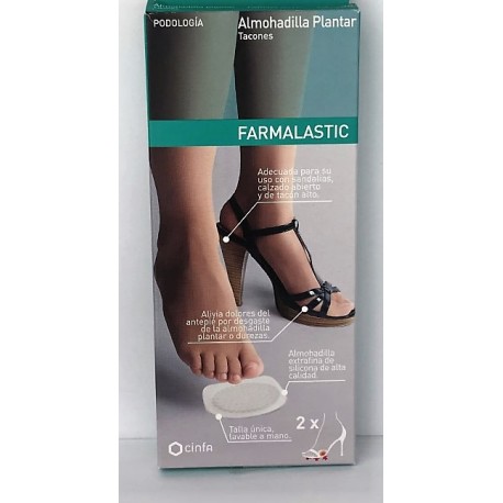 La Almohadilla Plantar Tacones Farmalastic T- Única es un producto útil para evitar y aliviar las metarsalgias o dolores que se pueden presentar en el antepié. Estos dolores pueden ser ocasionados por el envejecimiento o por el desgaste de la almohadilla natural plantar del pie, durezas, entre otros. Gracias a su uso, se logra aliviar la sensación de recalentamiento que se puede experimentar en el pie. Es muy recomendable utilizarla en sandalias o calzado abierto con tacón. Esta almohadilla cuenta con las siguientes características: su módulo es de gel de silicona de alta calidad, tiene un grosor de un centímetro y medio y una duración aproximada de dos meses. Suave y cómoda, facilita que los pies se sientan aliviados ante las molestias en el antepié. Previene los dolores por sobrecargas, las metatarsalgias, las durezas y callosidades, proporcionando descanso y amortiguación, lo que ayuda a prevenir los dolores en la planta del pie. Además, debe lavarse a mano sin frotar. Para un correcto mantenimiento, es importante no secarla al sol, ni cerca de fuentes de calor como radiadores, y tampoco planchar. Estas indicaciones son fundamentales para asegurar una buena conservación del producto. La almohadilla ayuda eficazmente a prevenir y aliviar el dolor en la zona plantar, especialmente al usar zapatos de tacón.