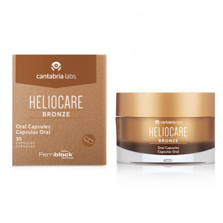 Los ingredientes de HELIOCARE ORAL CÁPSULAS BRONZE estimulan la síntesis natural de melanina y aceleran y potencian el bronceado de forma natural hasta en un 22,6%*. Su fórmula incluye Fernblock, que aumenta la resistencia de la piel al sol. En combinación con fotoprotección tópica, protege la piel, acelera su bronceado y ayuda a prolongarlo. *Double-blind, randomized, placebo-controlled assessment of the efficacy of a dietary supplement in improving tanning.