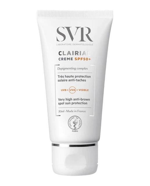 La Protección solar anti-manchas 2 en 1 Clairial SPF50+ ofrece alta protección contra los rayos UVA, UVB y luz visible, responsables de la aparición de manchas. Esta fórmula proporciona una corrección completa de manchas oscuras en pieles hiperpigmentadas afectadas por el sol, envejecimiento, imperfecciones y/o tez irregular.