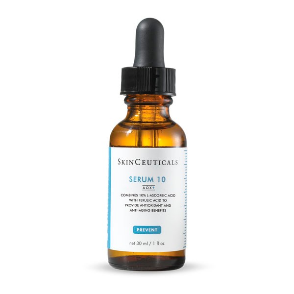 El sérum antioxidante SkinCeuticals Serum 10 brinda protección ambiental a todo tipo de piel, incluso a la piel sensible, al mismo tiempo que minimiza la aparición de las líneas de expresión y las arrugas. Serum 10 es ideal para la piel sensible o para la primera experiencia con un sérum antioxidante con vitamina C. Contiene un 10 % de vitamina C pura (ácido L-ascórbico) y un 0,2 % de ácido ferúlico, lo que contribuye a neutralizar el efecto nocivo de los radicales libres, causantes del envejecimiento de la piel por causas ambientales y la aparición de signos prematuros de envejecimiento. Este sérum antioxidante también ayuda a minimizar las líneas de expresión y las arrugas.
