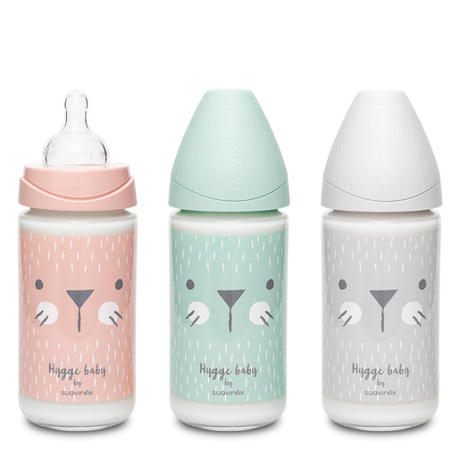 El biberón Suavinex Vidrio +0M cuenta con una tetina de forma redonda y simétrica, con flujo variable de 3 posiciones, que permite adaptarse al ritmo de succión del bebé tan solo girando el biberón. Se ajusta a las necesidades del bebé y al tipo de alimento, ya que permite regular la intensidad de la salida de líquido, garantizando una correcta succión desde el primer día. Coloca justo debajo de su nariz la señal de flujo deseado: poco, medio o mucho.